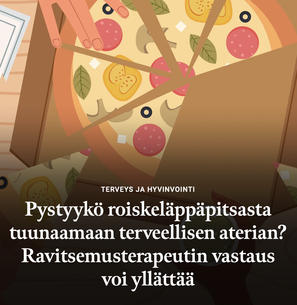 ”Olen perusterve, keski-ikäinen nainen, jolla on huonot ruokatavat: elän lähinnä light-juomilla, kahvilla, karkilla ja tupakalla. Syön kunnon ruokaa vähän ja harvoin, kuittaan ateriat muutamalla voileivällä. En oikein pidä lämpimistä aterioista. Mieluiten söisin vain hedelmiä, vihanneksia ja voileipiä. Nyt verikokeista löytyi anemia, joka lienee syynä myös ainaiseen väsymykseen. Mitä tehdä, kun ajatuskin jonkin maksakastikkeen syömisestä yököttää?”